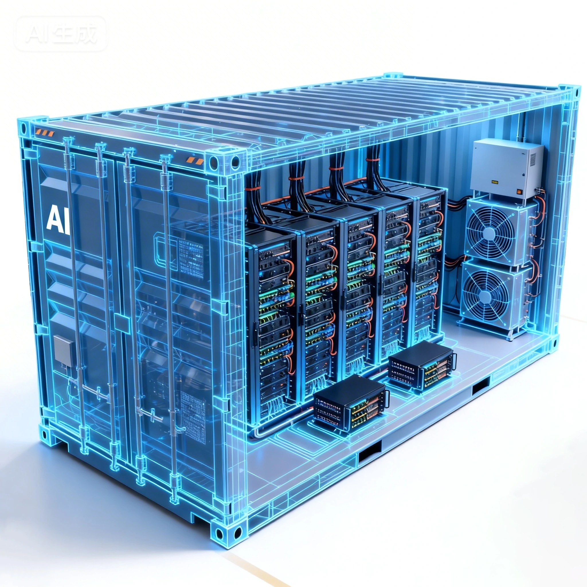 The AI factory container is a top-level prefabricated computing infrastructure designed for large model training, deep learning, supercomputing clusters, and AI research and development centers. It is specifically designed for ultra-high power GPU clusters, generally uses liquid cooling, and integrates power supply, cooling, networking, security, and cluster management. It can quickly build a 'mobile AI supercomputing center' to meet the training needs of models with hundreds of billions of parameters.