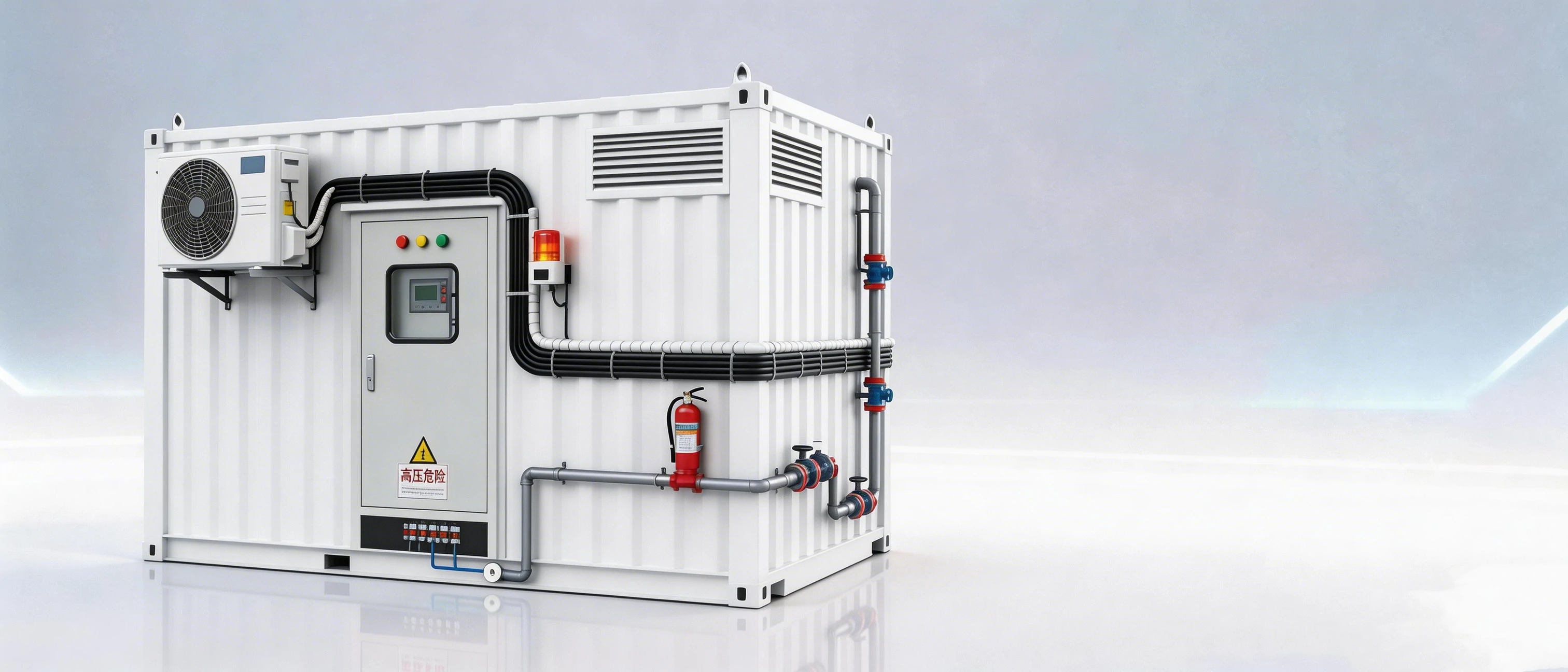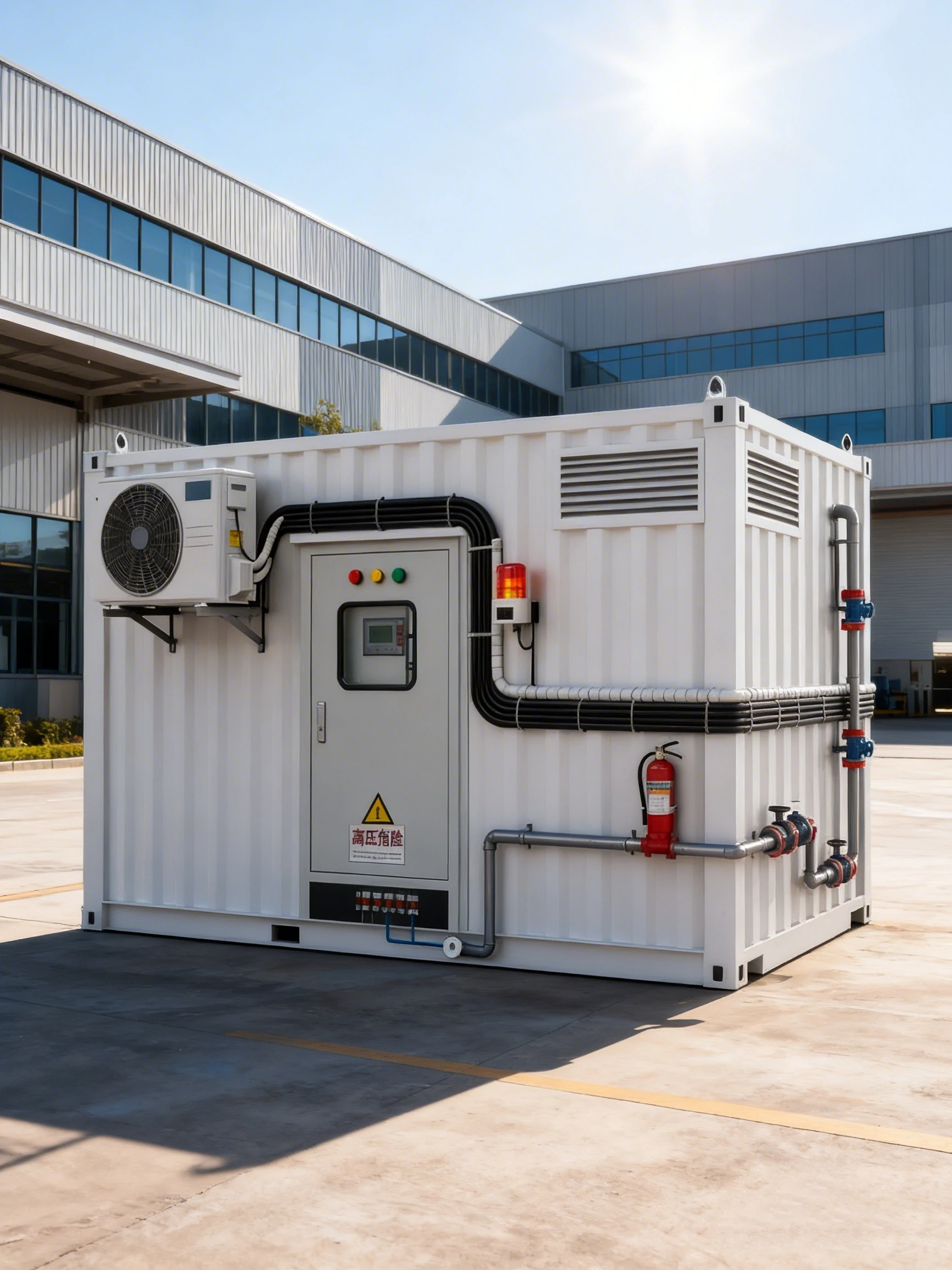 40-foot high cabinet structure, IP54 protection, shockproof, rust-proof, heat-insulated, suitable for long-term outdoor use.